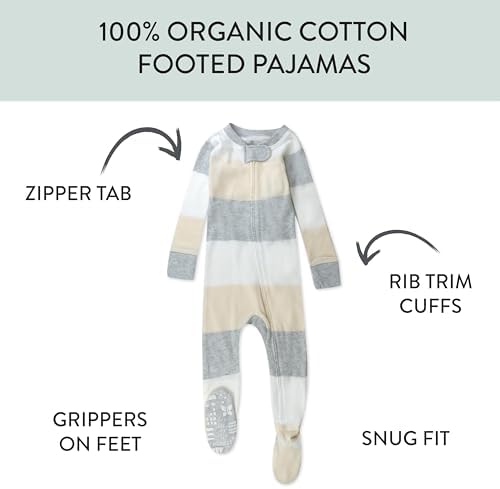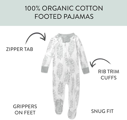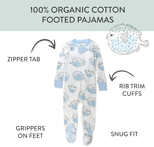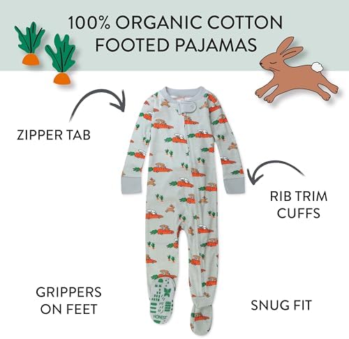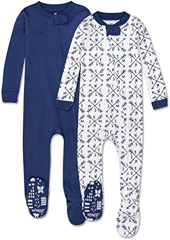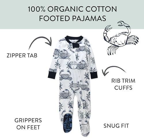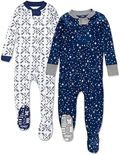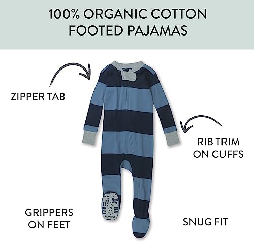 HonestBaby Non-Slip Footed Pajamas One-Piece Sleeper Jumpsuit Zip-Front PJs 100% Organic Cotton for Baby Boys