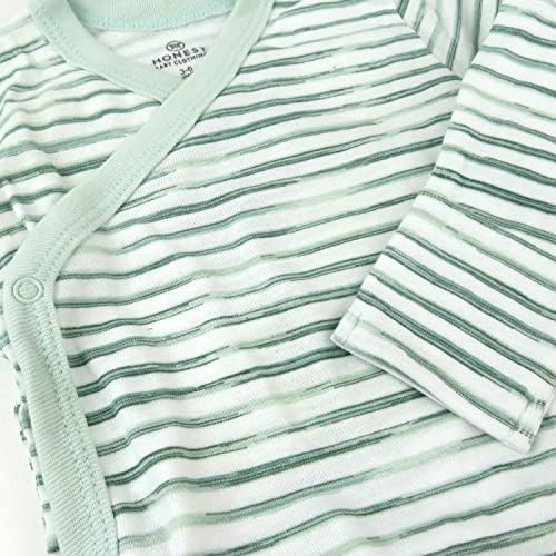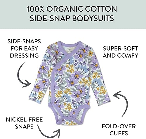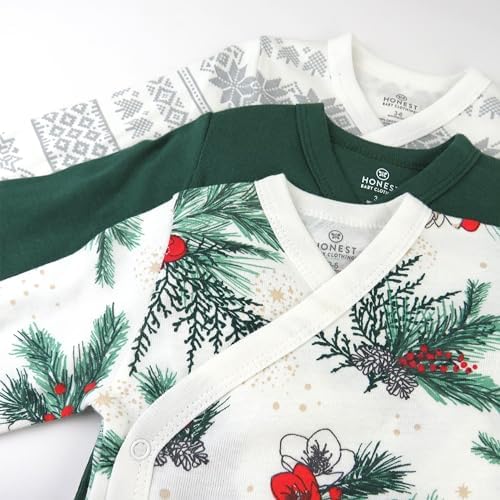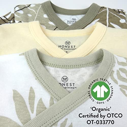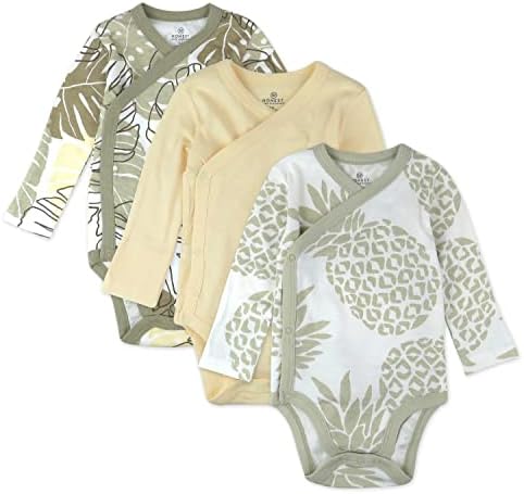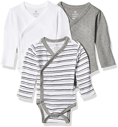 HonestBaby unisex-baby 3-pack Long Sleeve Side-snap Kimono Bodysuits Organic Cotton for Infant Baby Boys, Girls, Unisex