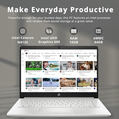 HP Premium Stream 14" HD BrightView Laptop, Intel Celeron N4120, 16GB RAM, 64GB eMMC Storage, UHD Graphics, HD Webcam, 1 Year Office 365, Bluetooth, WiFi, HDMI, Win 11s, Pink, 32GB Hotface USB Card