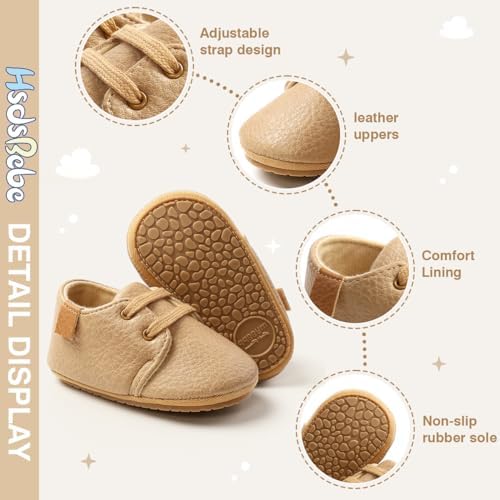 HsdsBebe Baby Boys Girls Oxford Shoes PU Leather Soft Rubber Sole Sneakers Anti-Slip Toddler Ankle Boots Infant Walking Shoes Moccasins