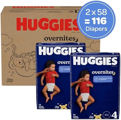 Huggies Size 4 Overnites Baby Diapers: Overnight Diapers, Size 4 (22-37 lbs), 116 Ct (2 Packs of 58)