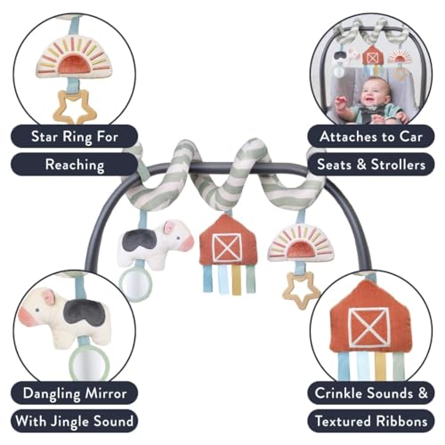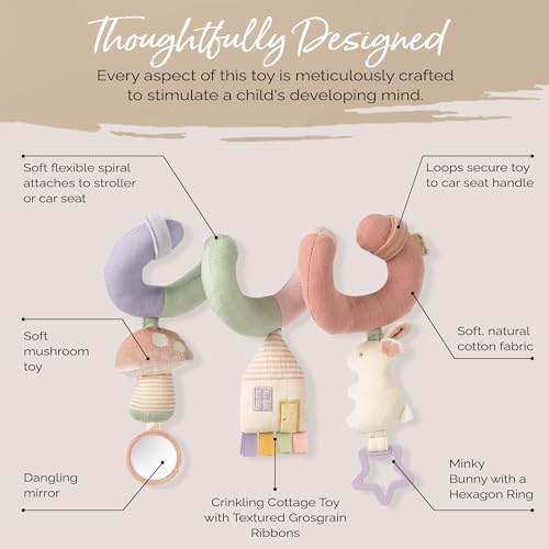 Itzy Ritzy Spiral Car Seat & Stroller Activity Toy - Stroller & Car Seat Toys for Ages 0 Months and Up - Hanging Toys Include Clinking Rings, Mirror and Textured Ribbons (Rainbow)
