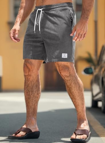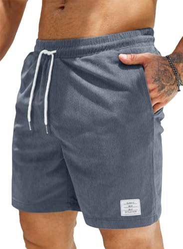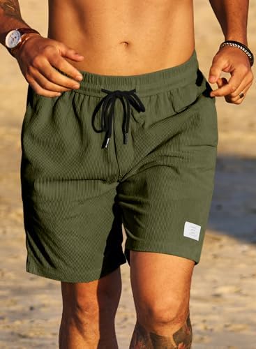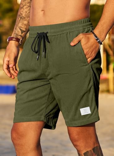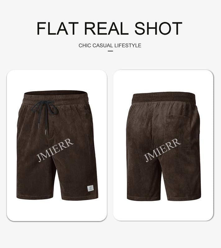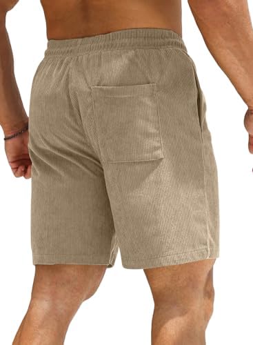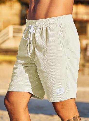 JMIERR Men's Corduroy Shorts Casual Elastic Waist Drawstring Lightweight Summer Beach Shorts