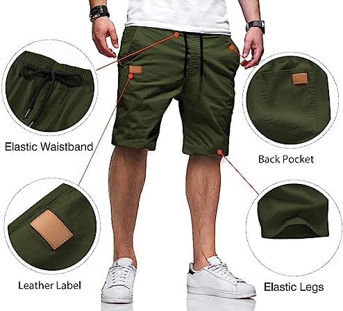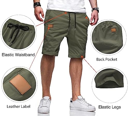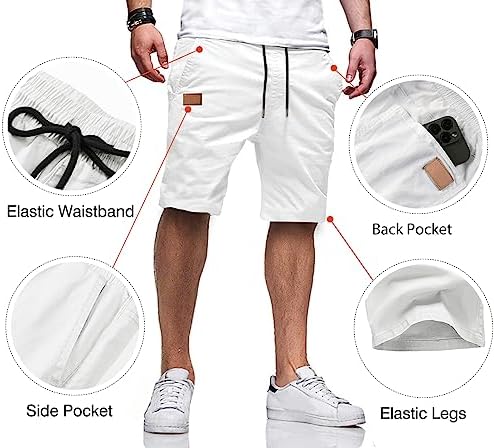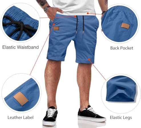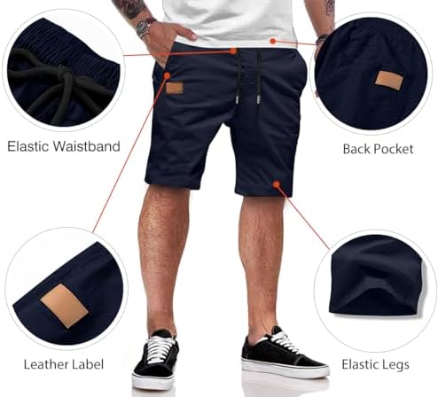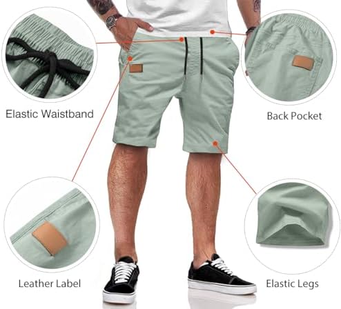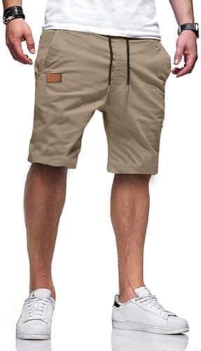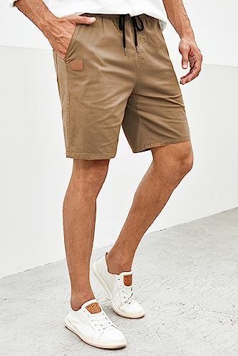 JMIERR Mens Casual Shorts - Cotton Drawstring Summer Beach Stretch Twill Chino Golf Shorts