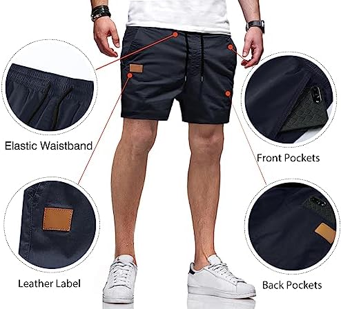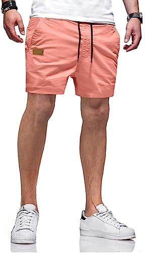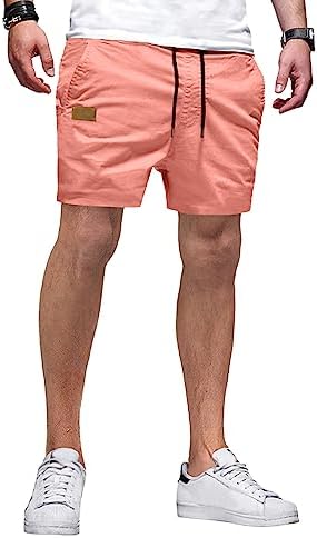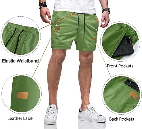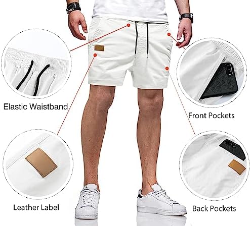 JMIERR Mens Casual Shorts - Cotton Drawstring Summer Beach Stretch Twill Chino Golf Shorts with Pockets
