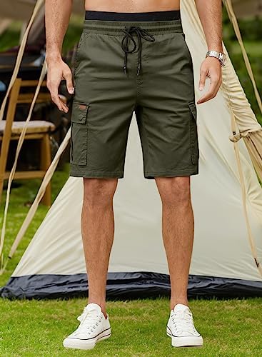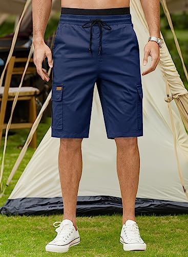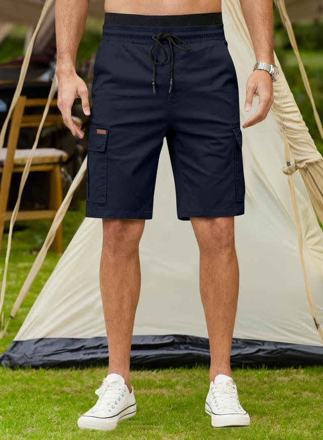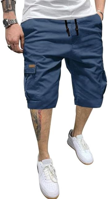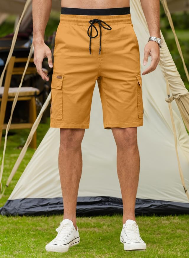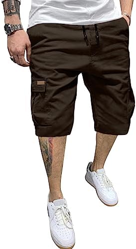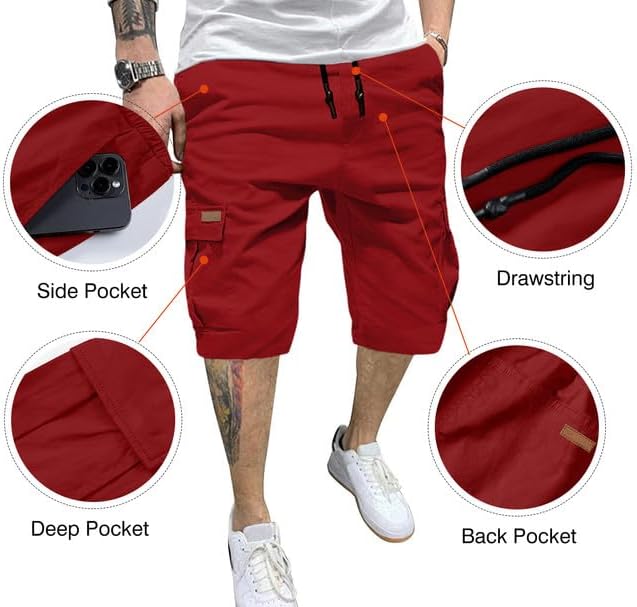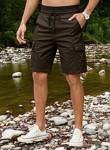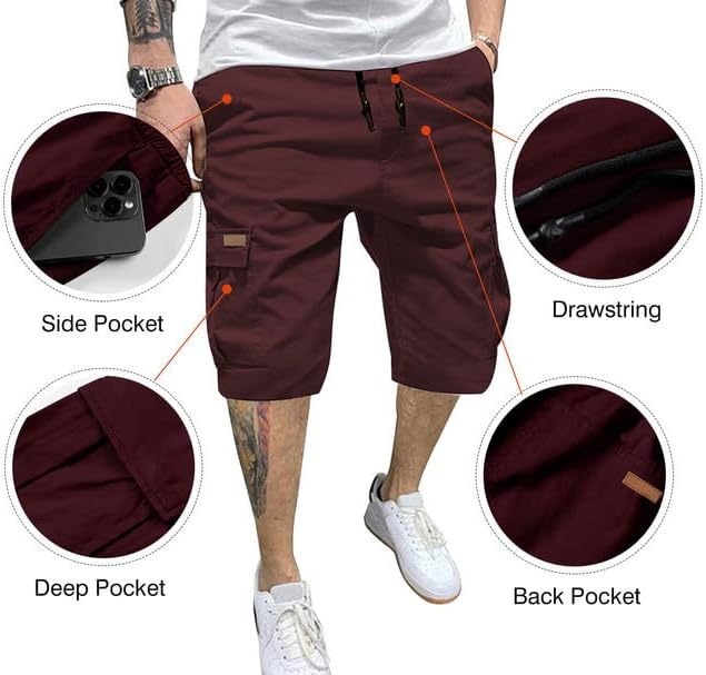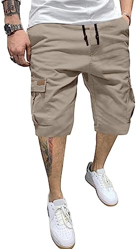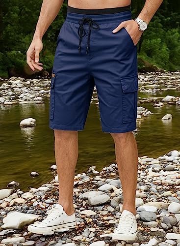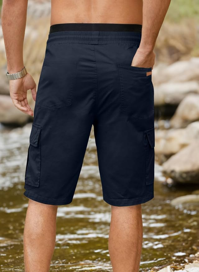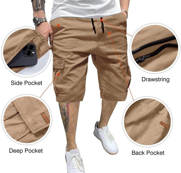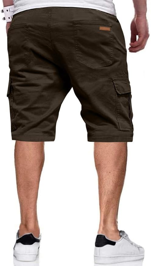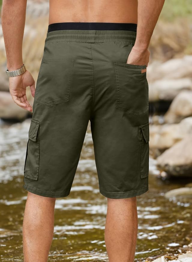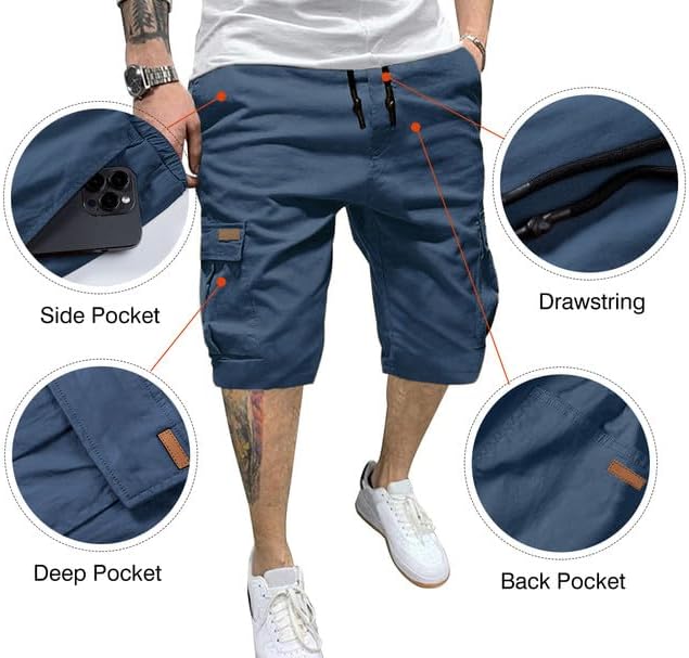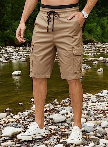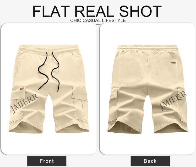 JMIERR Mens Casual Twill Cargo Shorts Cotton Drawstring Classic Cargo Stretch Short with 6 Pockets