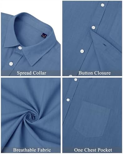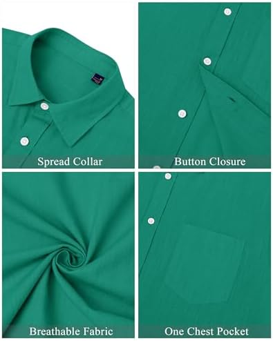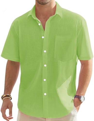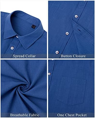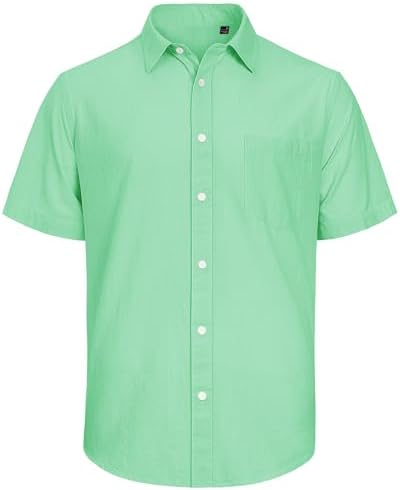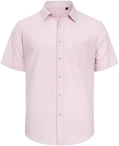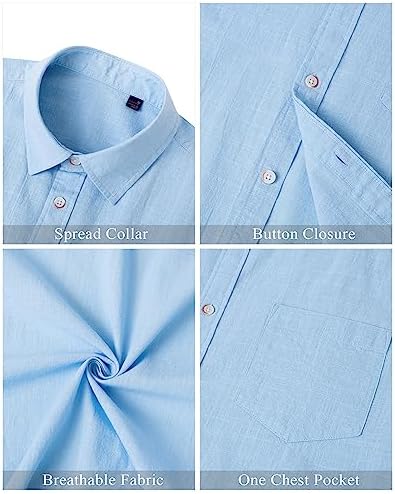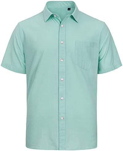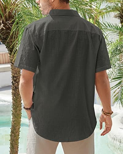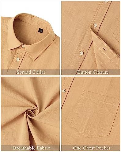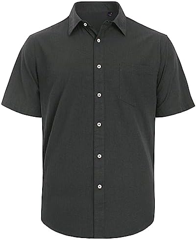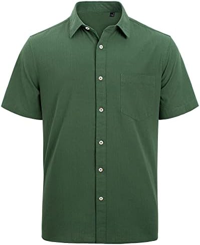 J.VER Men's Cotton Linen Short Sleeve Shirts Casual Lightweight Button Down Shirts Vacation Beach Summer Tops with Pocket