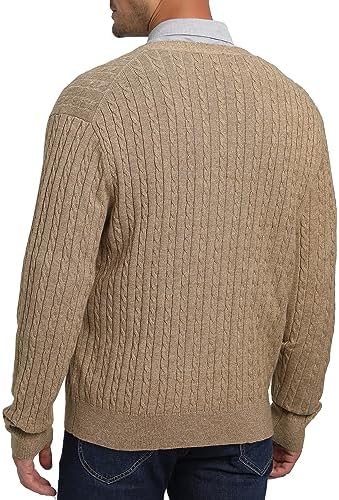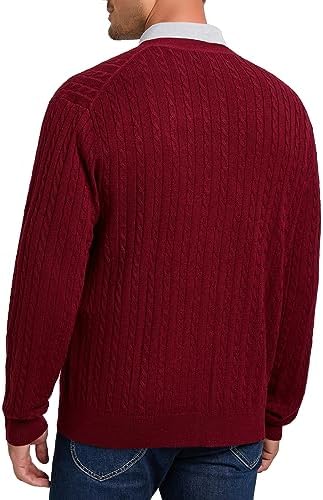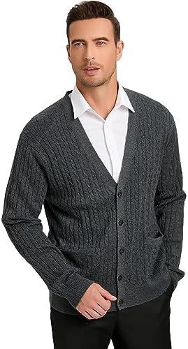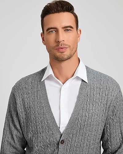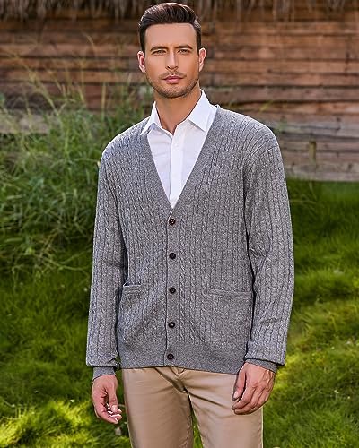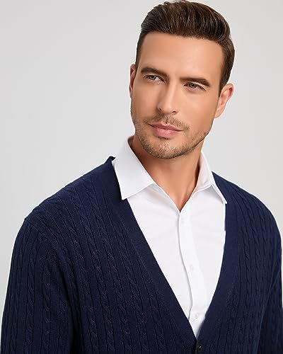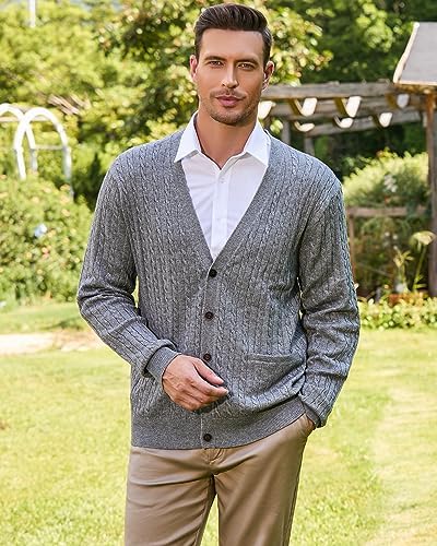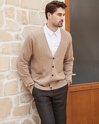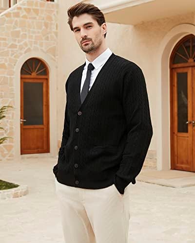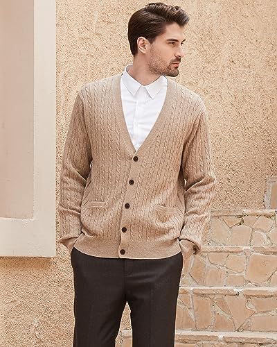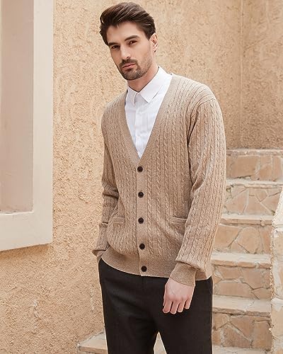 Kallspin Men's Cardigan Sweater Wool Blend Cable Knit V Neck Buttons Cardigan with Pockets