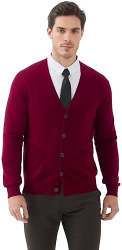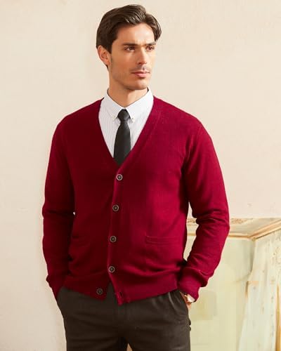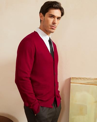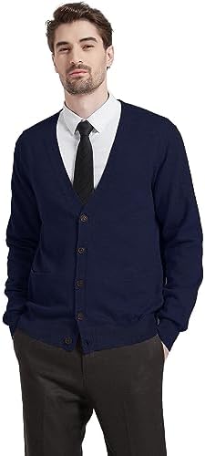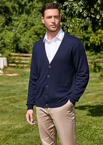 Kallspin Men's Cardigan Sweaters Wool Blend V Neck Button Down Sweaters with Pockets