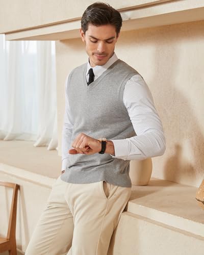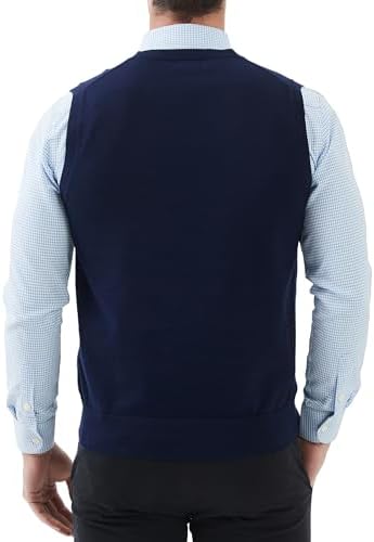 Kallspin Men's Pure Cotton Sweater Vest V Neck Regular Fit Knit Sleeveless Pullover Sweater