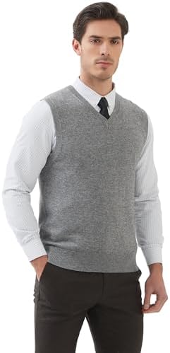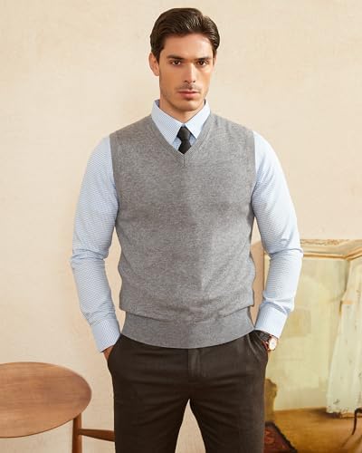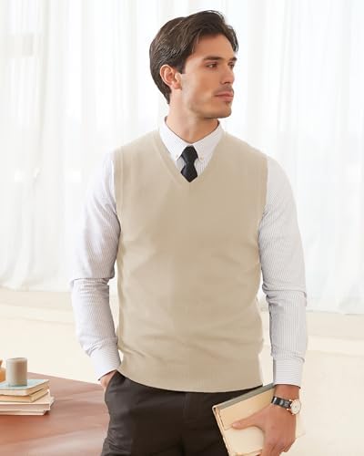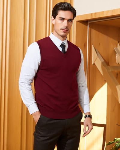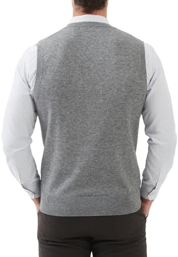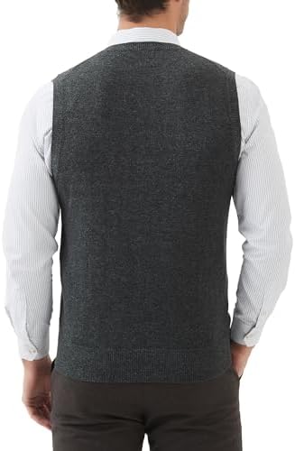 Kallspin Men's Wool Blended Vest Sweater Relaxed Fit V Neck Sleeveless Knitted Pullover