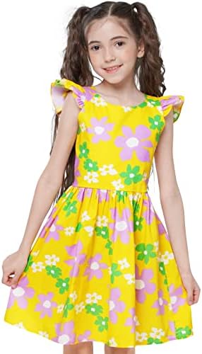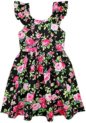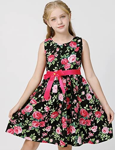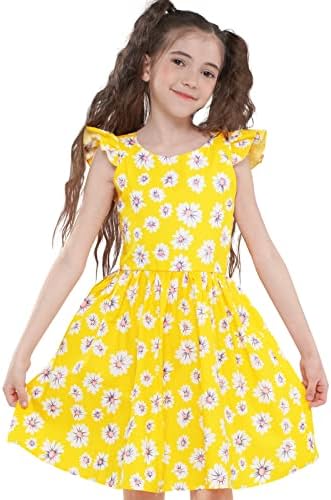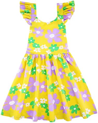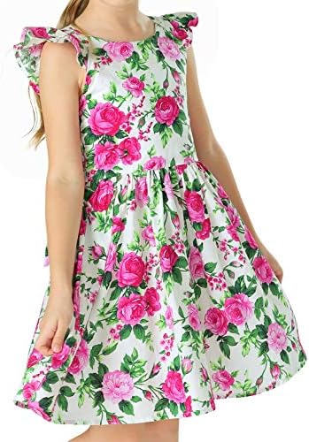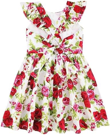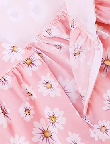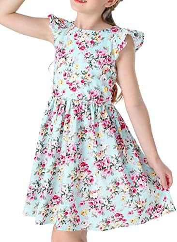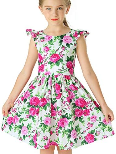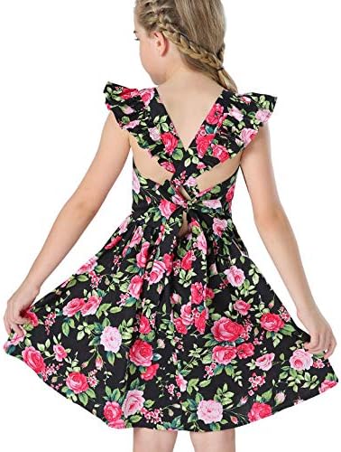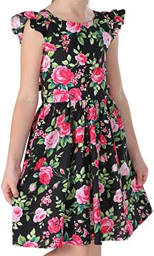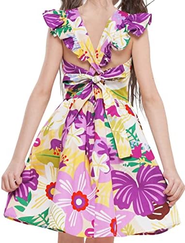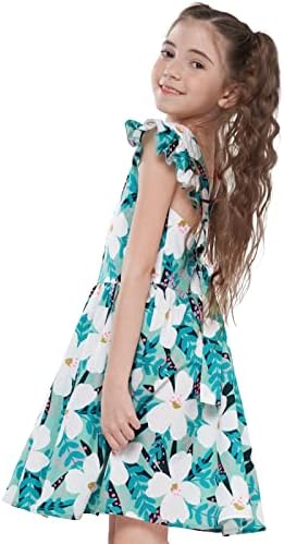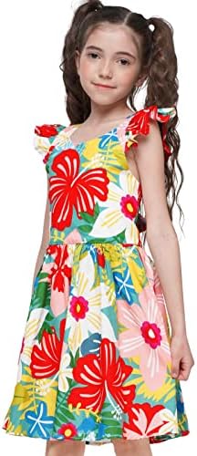 Floerns Girl's Floral Print Sleeveless Ruched Ruffle Hem A Line Cami Short Dress