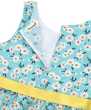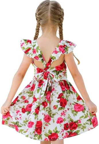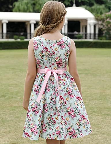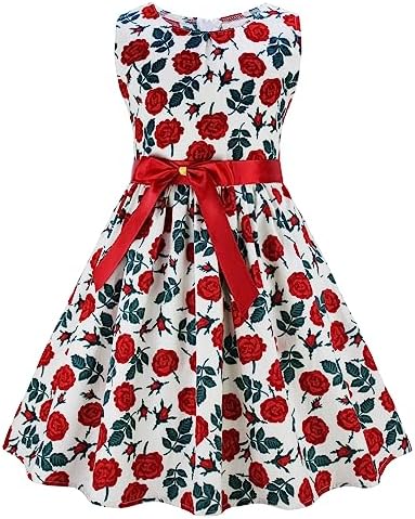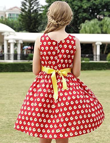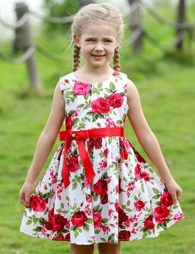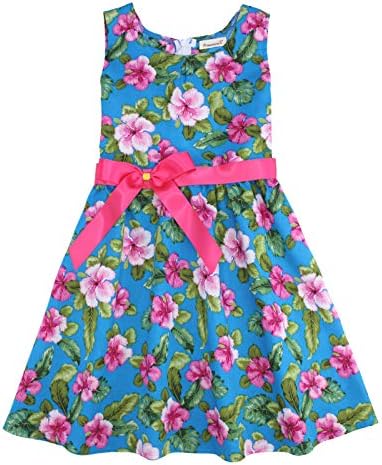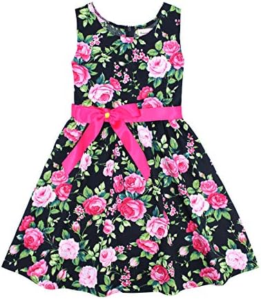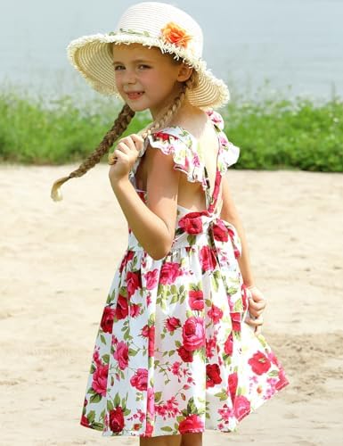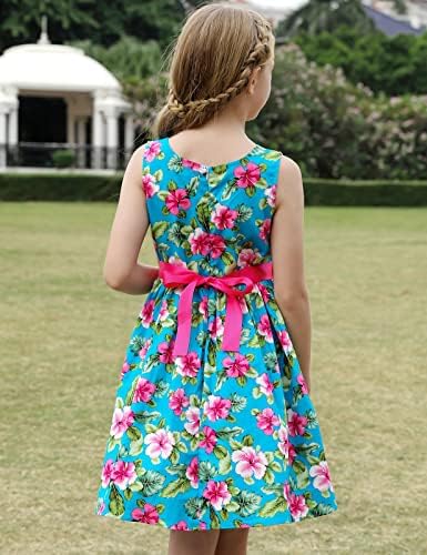 Girls Bohemian Dresses Floral Sleeveless Rainbow Beach Sundress with Necklace 2-12T