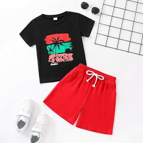 Kid Toddler Boy Summer Clothes Hawaiian Jungle Short Sleeve T-Shirt + Shorts 2PC Summer Outfits Set