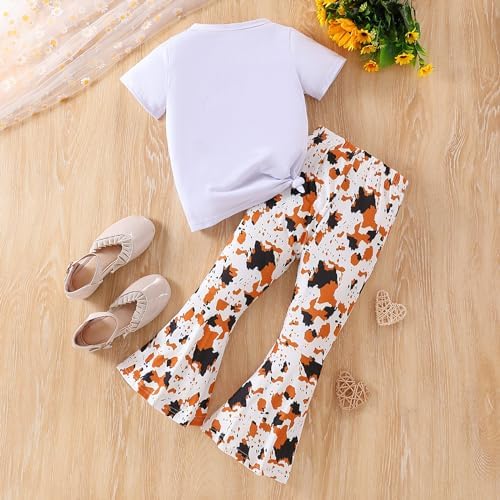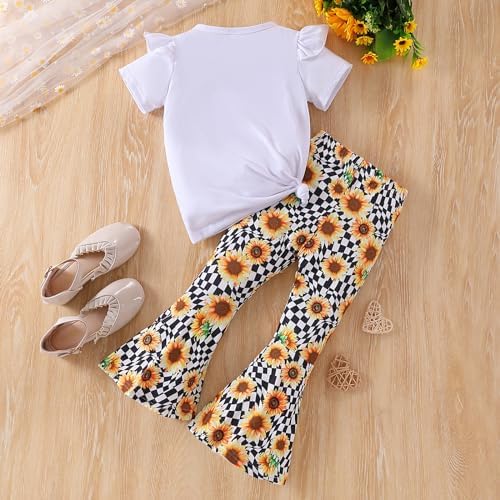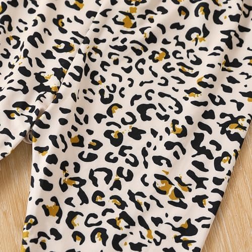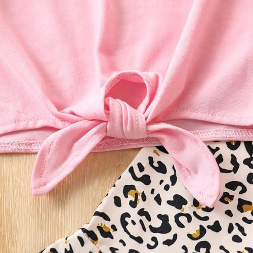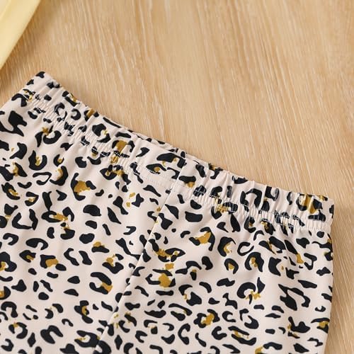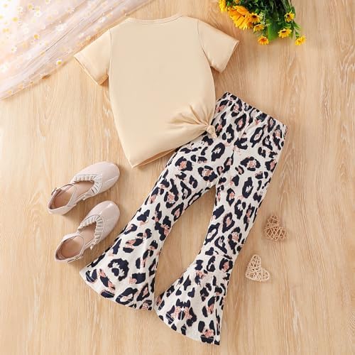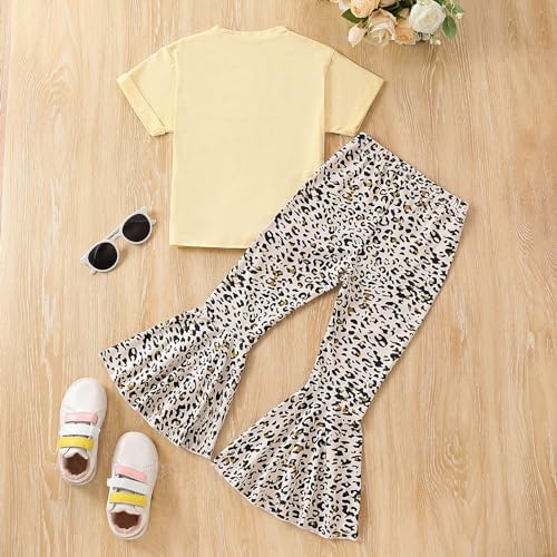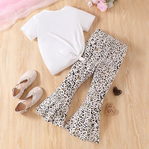 Kids Toddler Girl Clothes Letter Print Graphic Top + Leopard Print Flare Leg Pants 2PC Summer Clothing Set