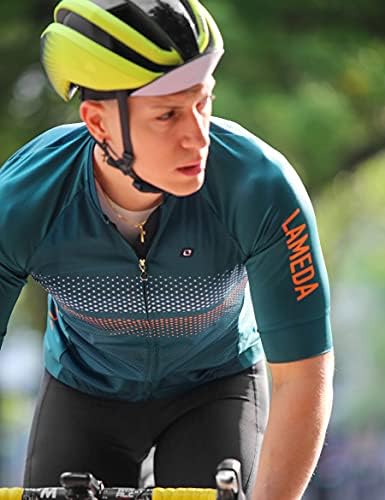 LAMEDA Men's Cycling Jersey Breathable Lightweight Short Sleeve Elastic Pro Road Bike Shirt Full Zip