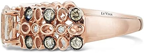 LE VIAN 14K Rose Gold, Oval Morganite & 2/5 Cttw White/Chocolate Diamond Flower Fashion Ring (H-I & Fancy Brown Color, SI1-SI2 Clarity)- Size 7