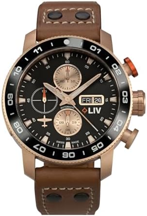 LIV P-51 Titanium 46MM Swiss Automatic Day-Date Chrono Men's Watch - Unidirectional Ceramic Bezel- High-Grade Titanium Case - Sapphire Crystal