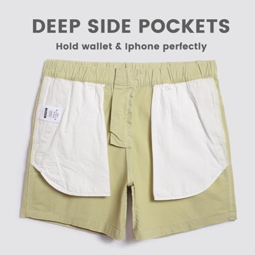 maamgic Men's Classic-fit 5.5" Cotton Casual Shorts Elastic Waistband with Multi-Pocket Daily Wear Walking Summer Outfit