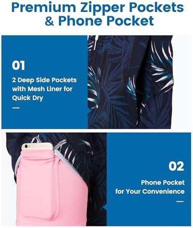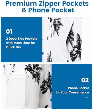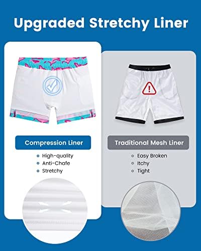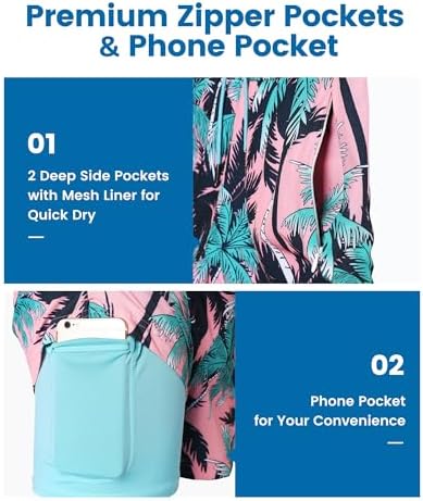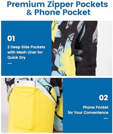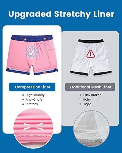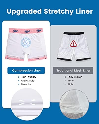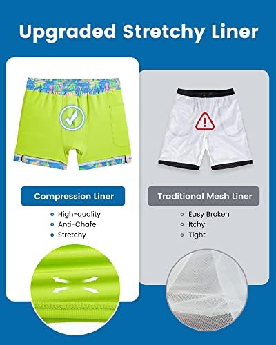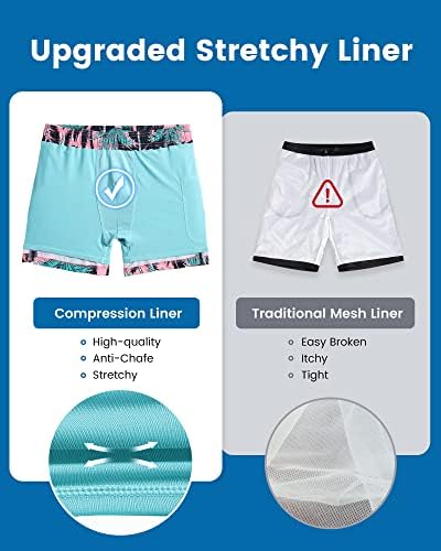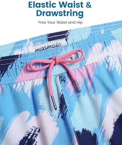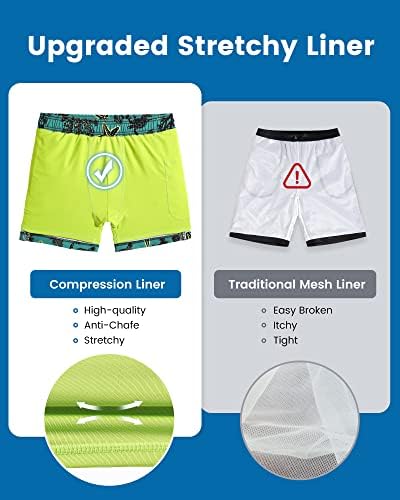 maamgic Mens Swim Trunks with Compression Liner 5" Stretch Beach Shorts Quick Dry with Zipper Pockets No-Chafing Board Shorts