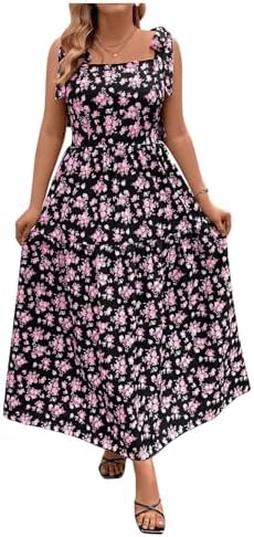 Summer Dresses for Women Beach Boho Sleeveless Vintage Floral Flowy Pocket Tshirt Tank Sundresses
