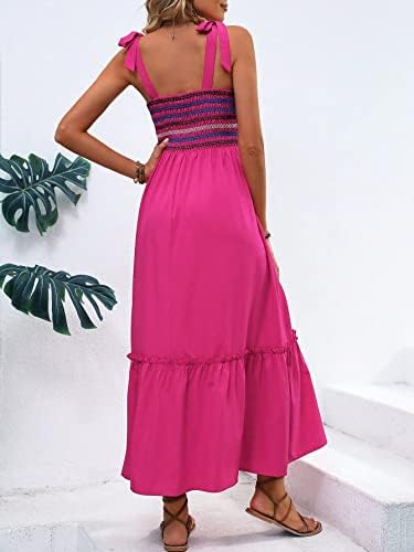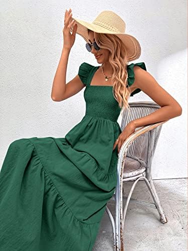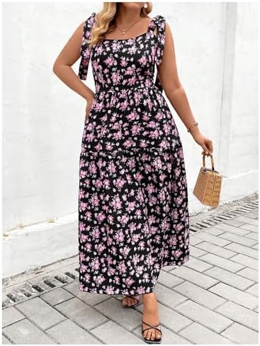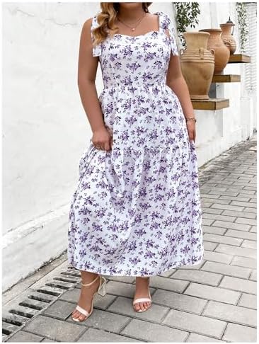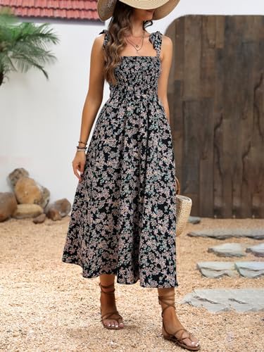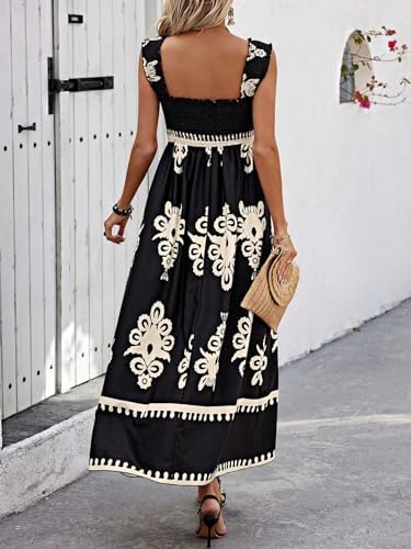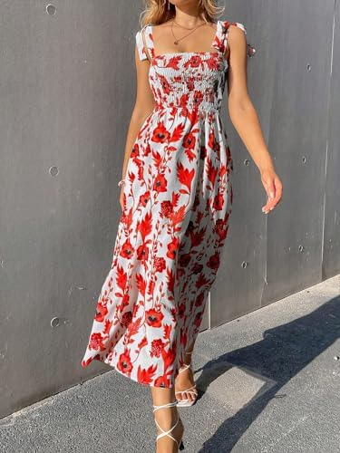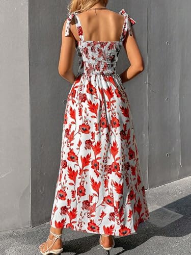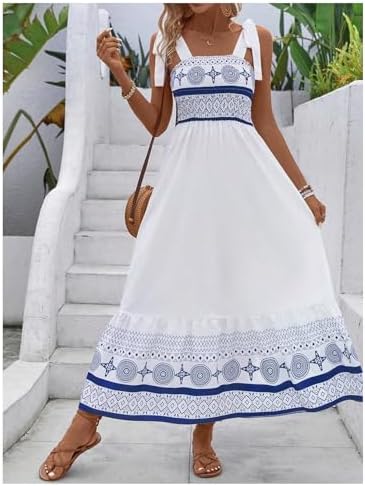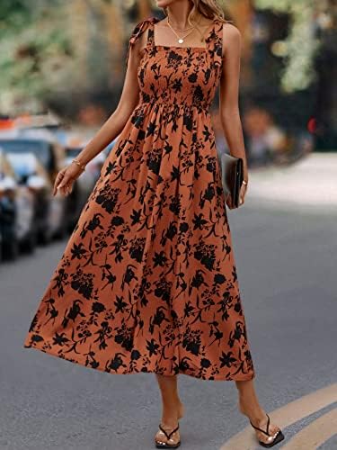 MakeMeChic Women's Summer Boho Dress Casual Floral Print Spaghetti Strap Square Neck Long Maxi Dress Beach Sun Dress