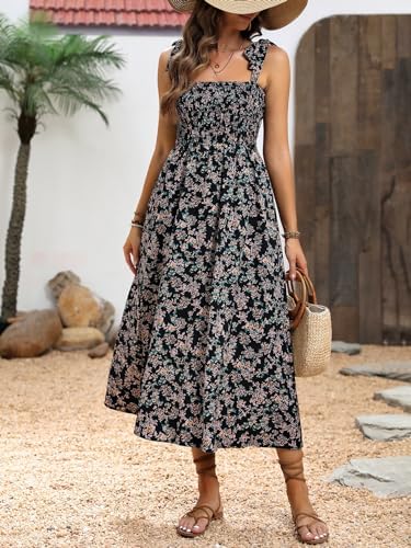 GRACE KARIN Women's 2024 Summer Floral Boho Dress Square Neck Strapped Swing A Line Beach Long Maxi Dress