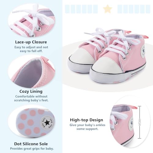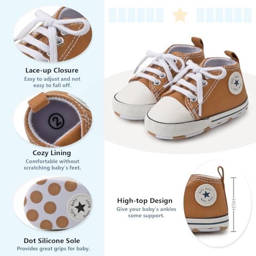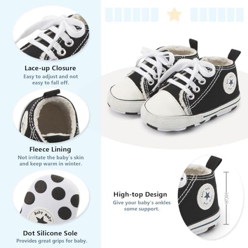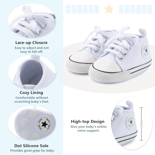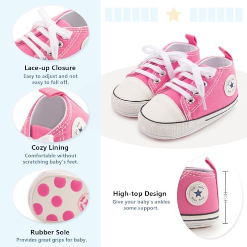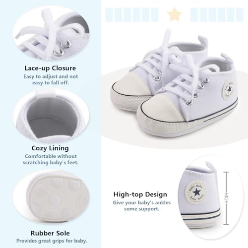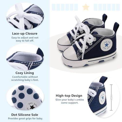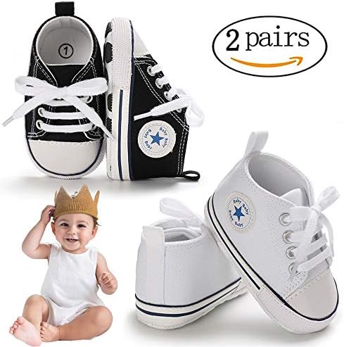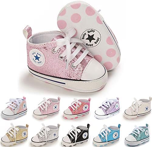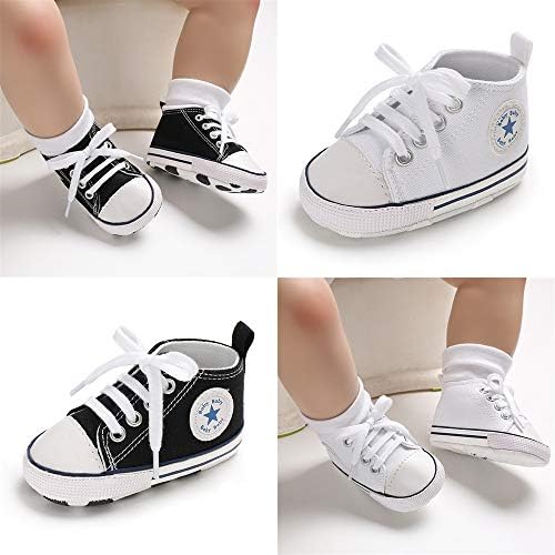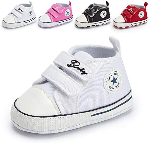 Meckior Baby Girls Boys Canvas Sneakers Soft Sole High-Top Ankle Infant First Walkers Crib Shoes