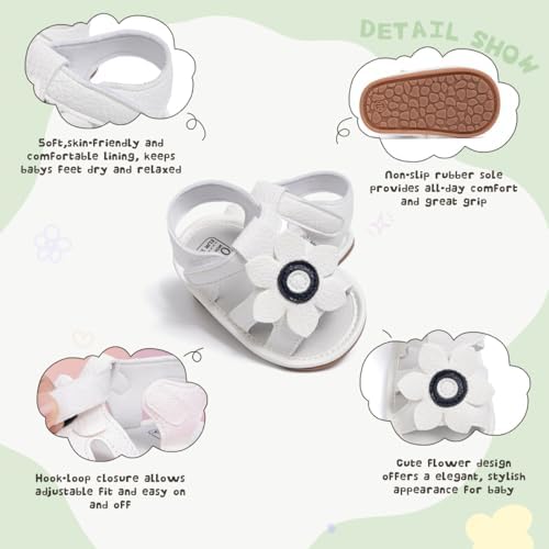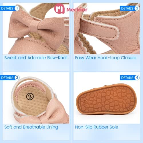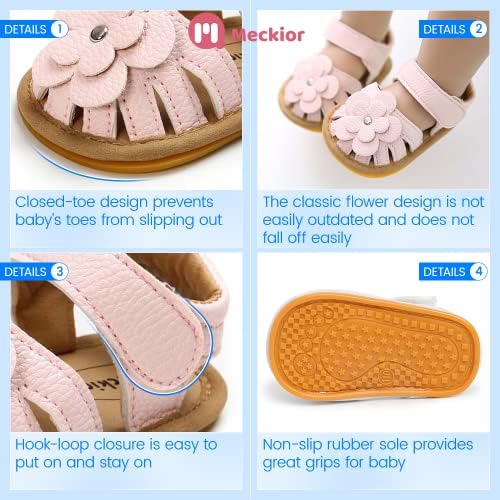 Meckior Baby Toddler Infant Girls PU Leather Soft Open Toe Summer Sandals Flower Princess Flat Shoes