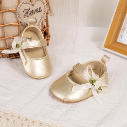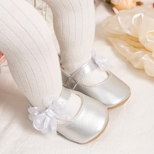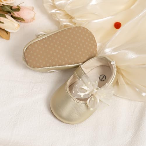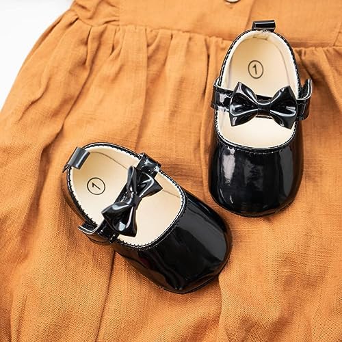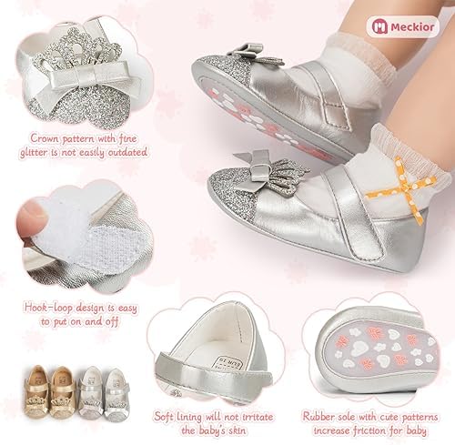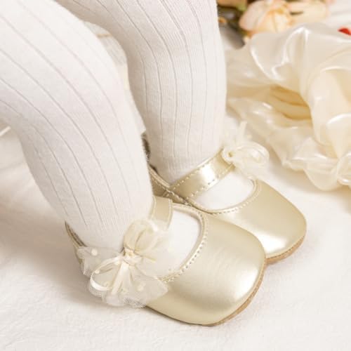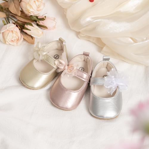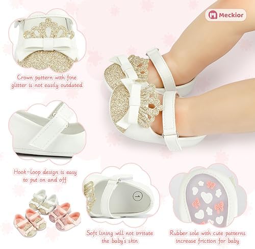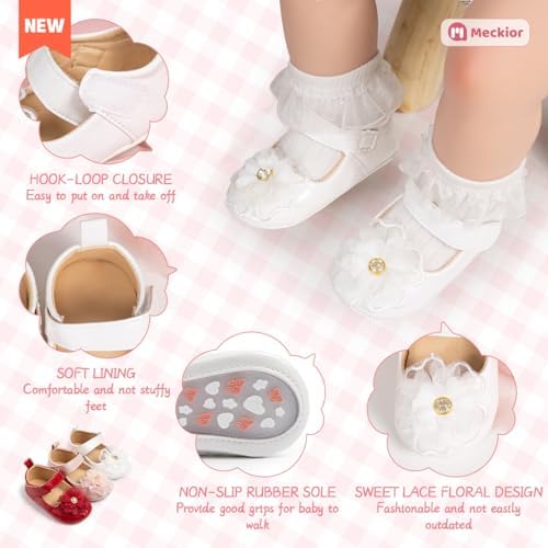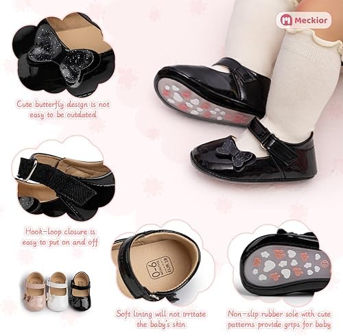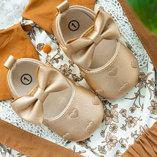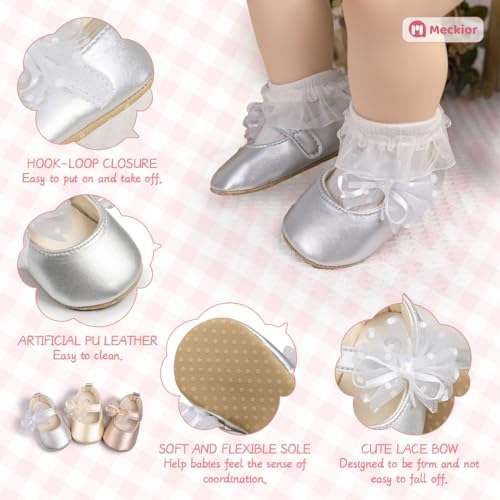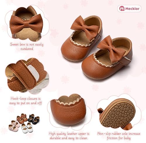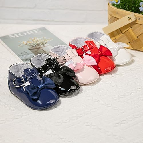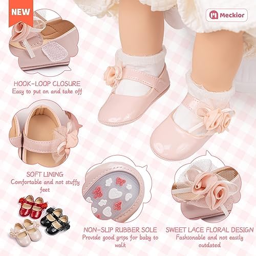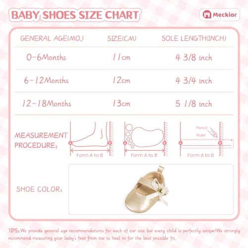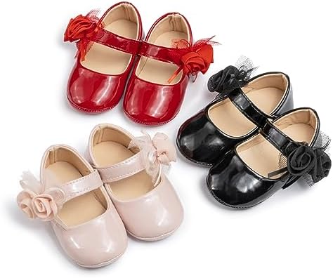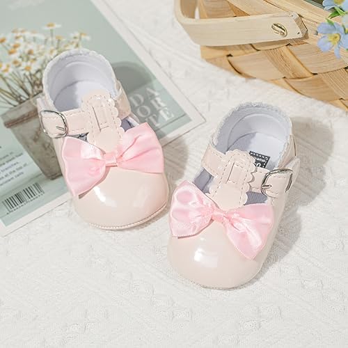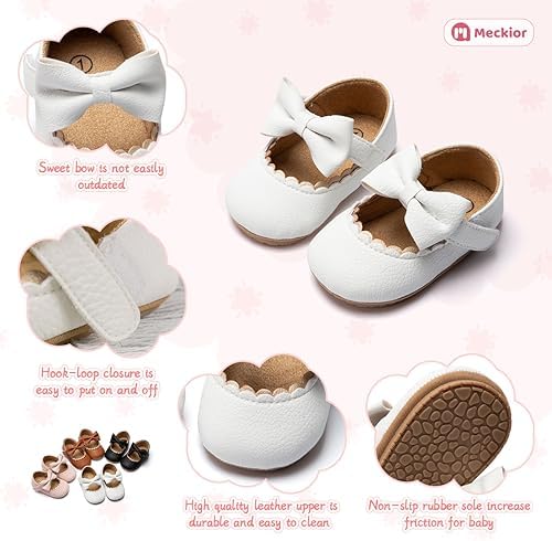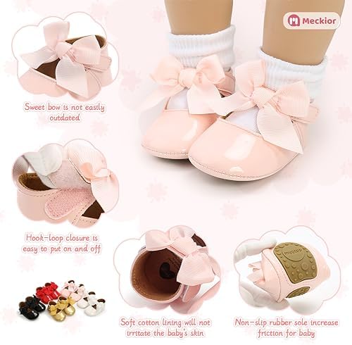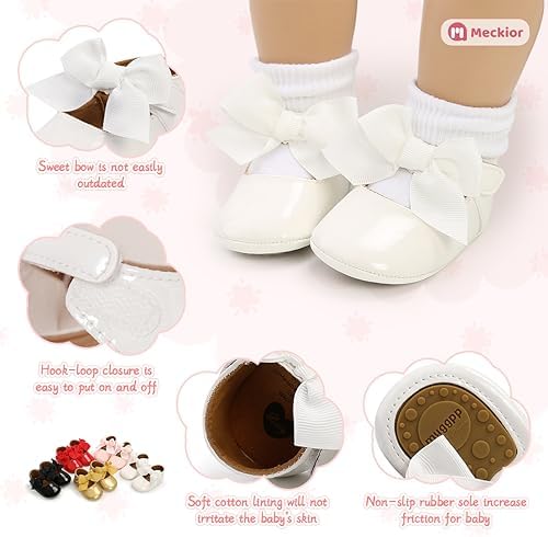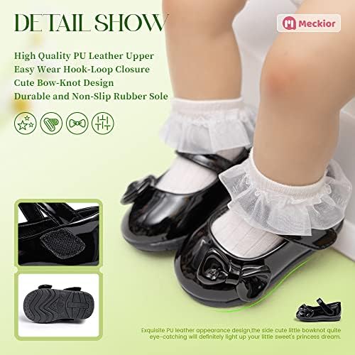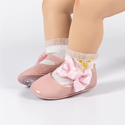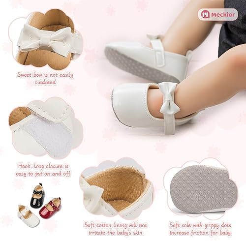 Meckior Infant Baby Girls Soft Sole Bowknot Princess Wedding Dress Mary Jane Flats Prewalker Newborn Light Baby Sneaker Shoes