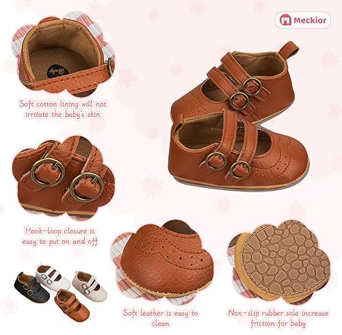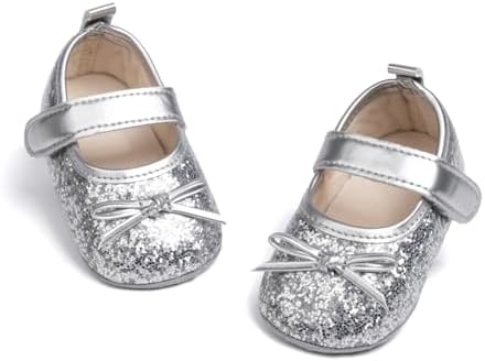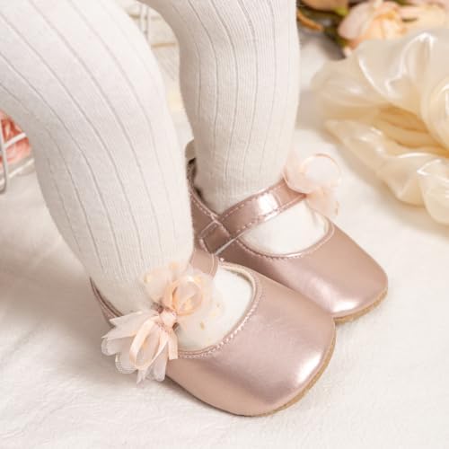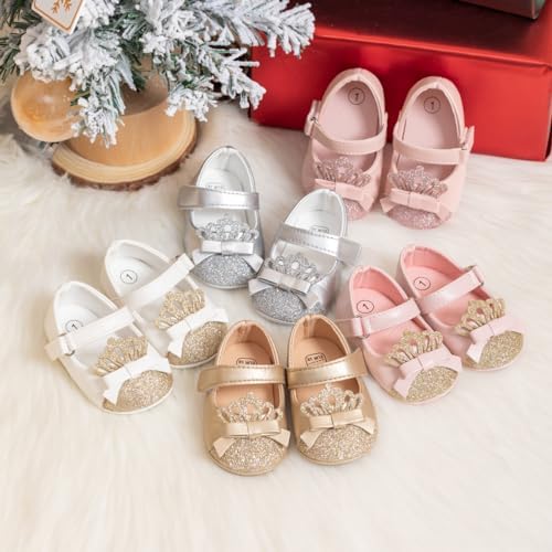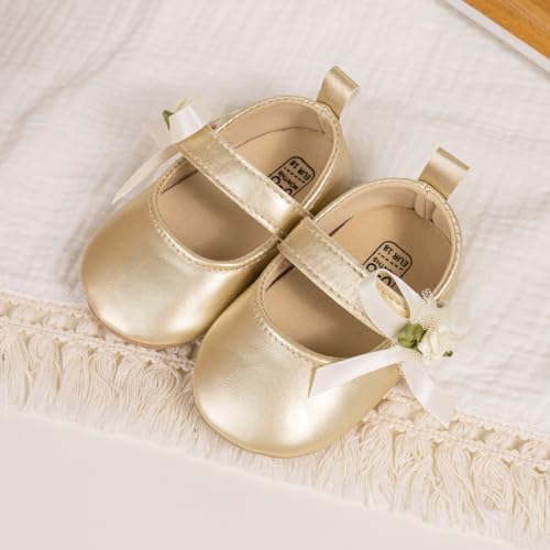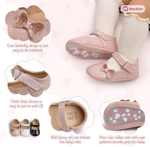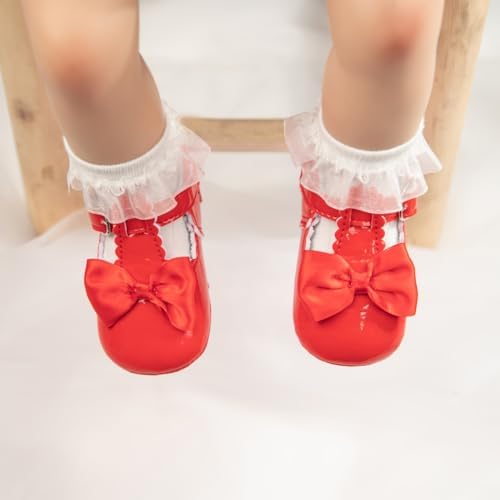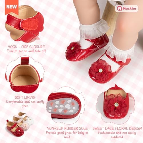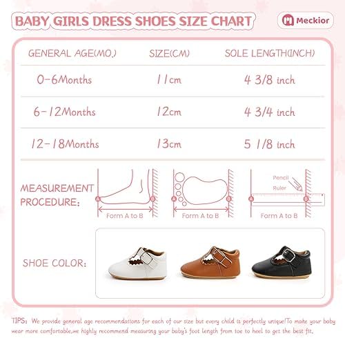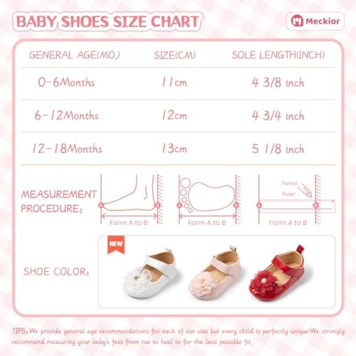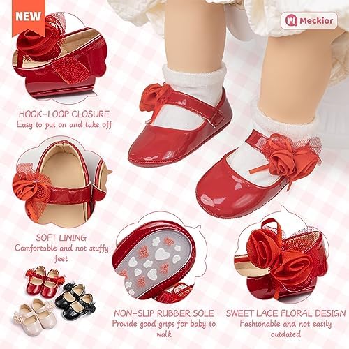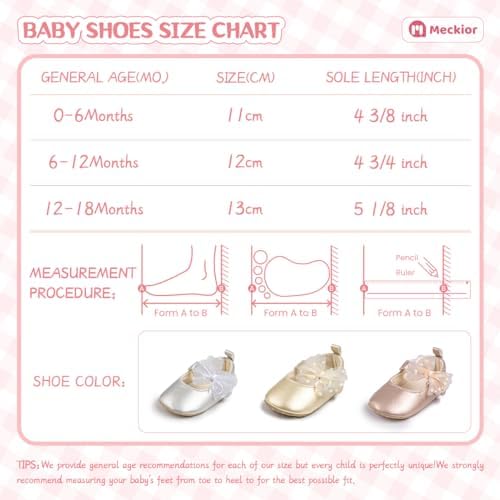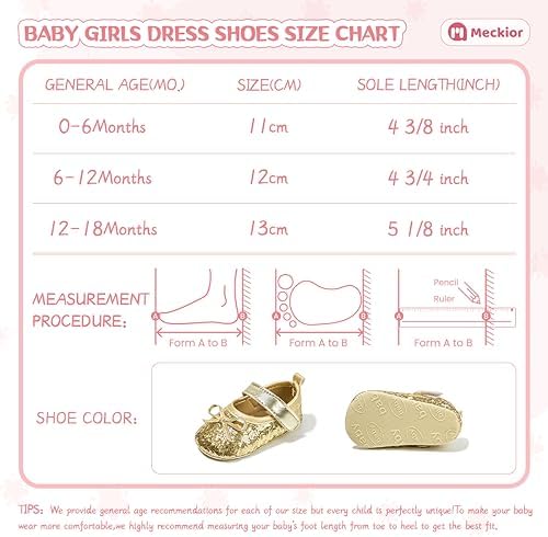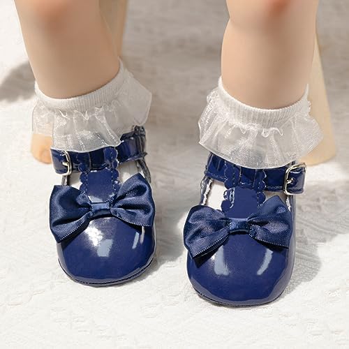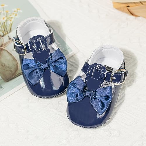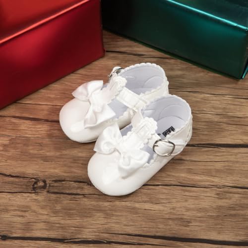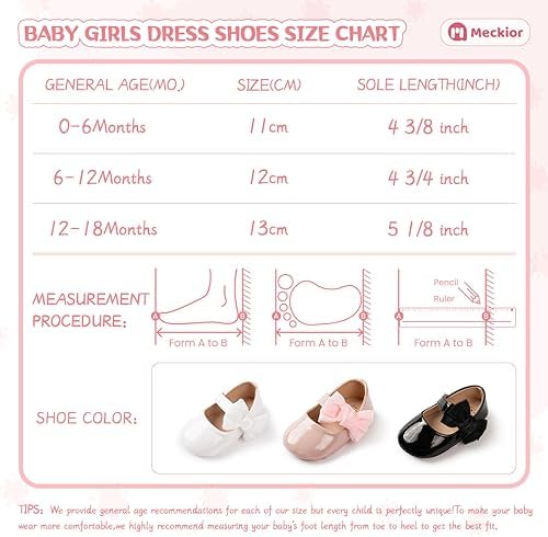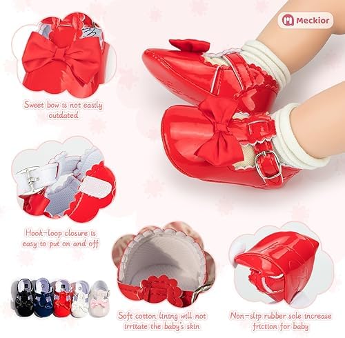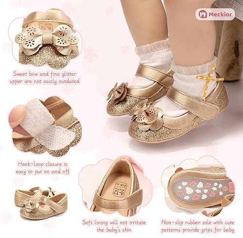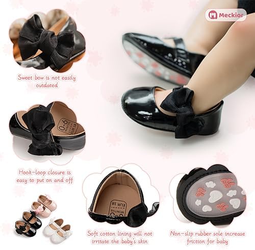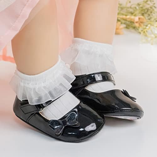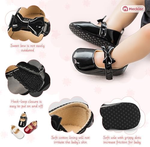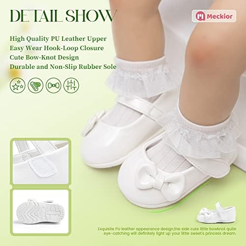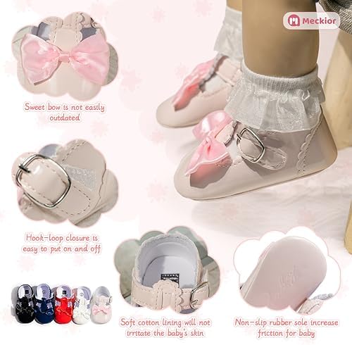 Meckior Infant Baby Girls Soft Sole Bowknot Princess Wedding Dress Mary Jane Flats Prewalker Newborn Light Baby Sneaker Shoes