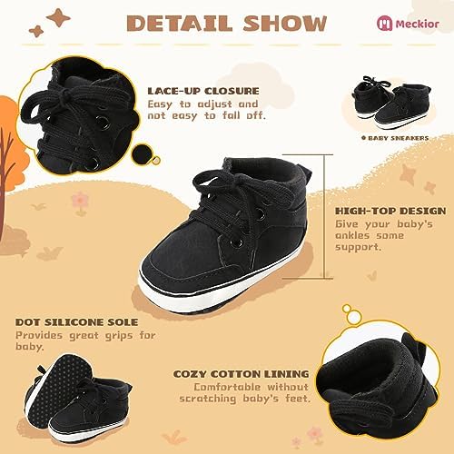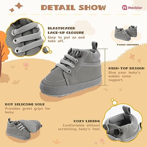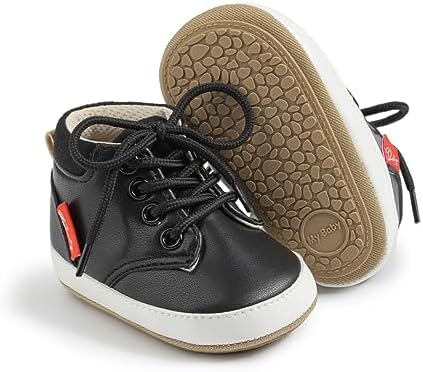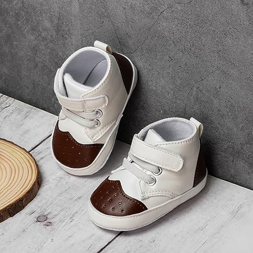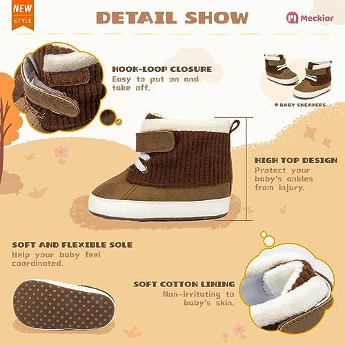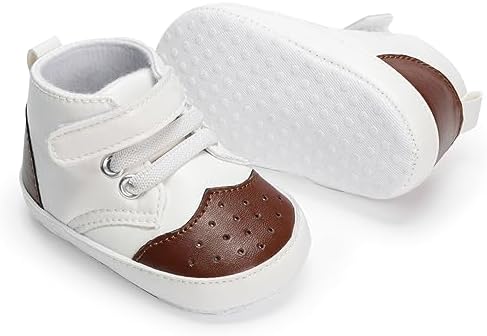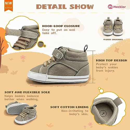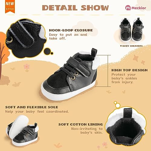 Meckior Toddler Baby Boys Girls High Tops Ankle Sneakers Soft Anti-Slip Sole PU Leather Moccasins Infant Newborn Prewalker First Walking Crib Shoes