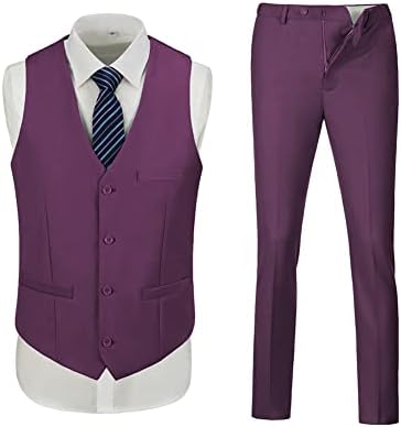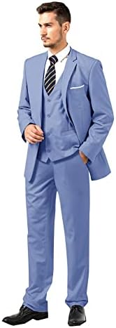 Men's 3 Piece Slim Fit Suit Set, Two Button Blazer Solid Jacket Vest Pants Wedding Business Suit
