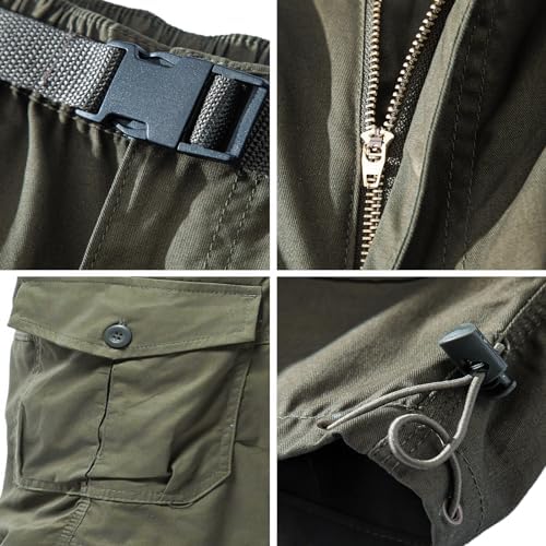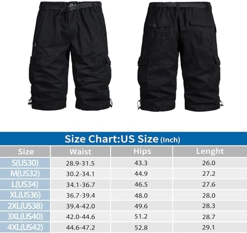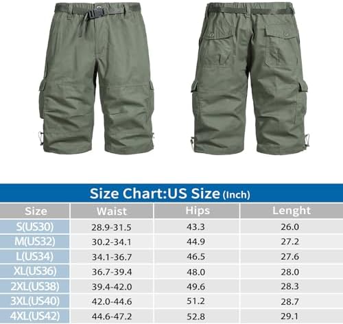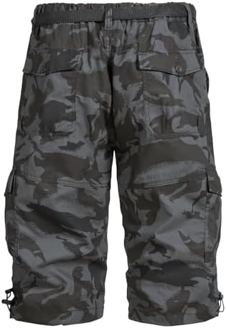 Men's Cargo Shorts 3/4 Relaxed Fit Mens Running Shorts 7 Pockets Elastic Waist Cotton Hiking Shorts
