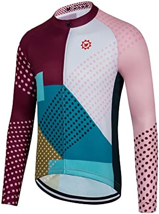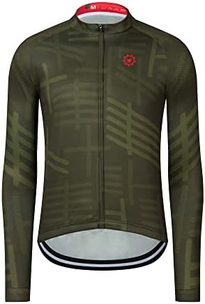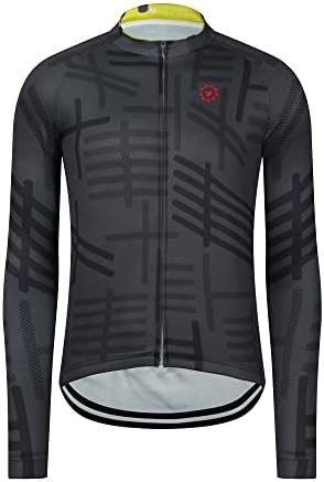 Spotti Men's Cycling Bike Jersey Long Sleeve with 3 Rear Pockets - Moisture Wicking, Breathable, Quick Dry Biking Shirt