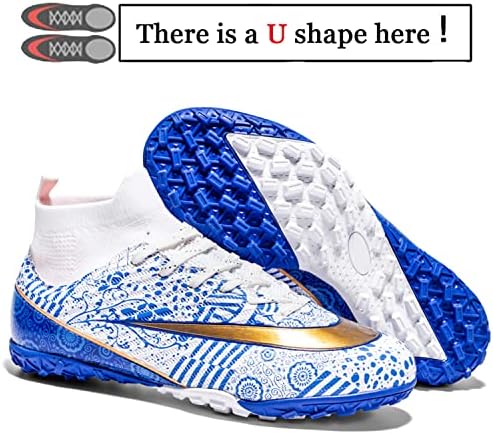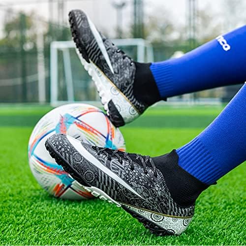 Men's Soccer Shoes Cleats Professional High-Top Breathable Athletic Turf Football Shoes Outdoor/Indoor Professional Futsal Football Training Sneakers