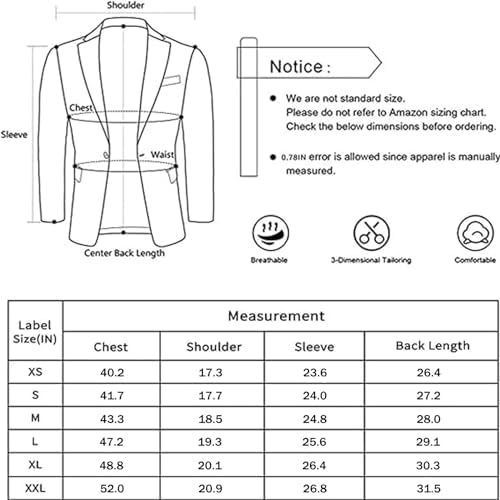 Mens Blazers Slim Fit Business Casual Men Suit Sport Coat One Button Travel Blazer Lightweight Suit Jacket