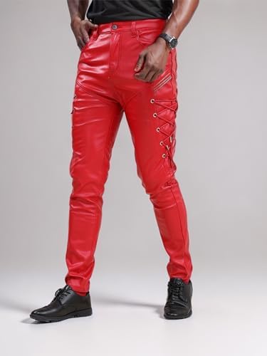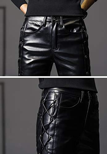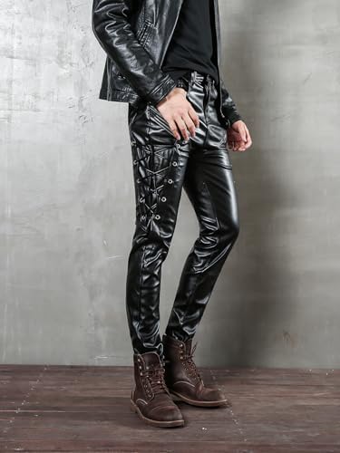 Men`s Rock Steampunk Lace Up PU Leather Pants Slim Fit