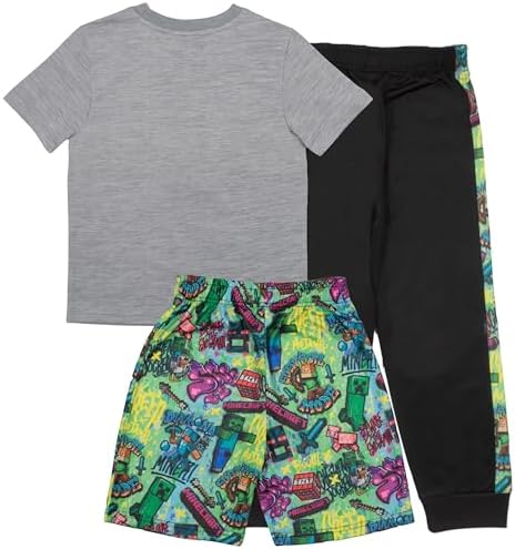 Minecraft Boys 3-Piece Pants Set - Short Sleeve T-Shirt, Shorts, & Jogger Pants 3-Pack Bundle Set for Boys