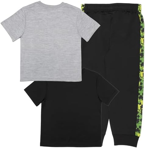 Minecraft Creeper Boys 3-Piece Pants Set, Two Short Sleeve T-Shirts & Jogger Pants 3-Pack Bundle Set for Kids