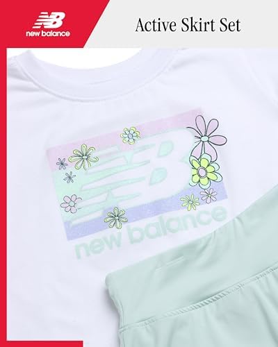 New Balance Girls' Active Skort Set - 2 Piece Hi-Lo T-Shirt and Scooter Skirt - Performance Tennis Skirt Set (7-12)