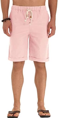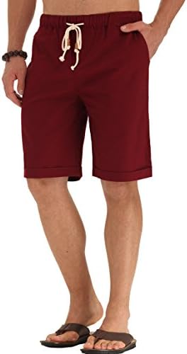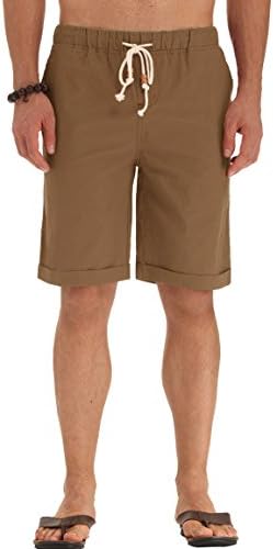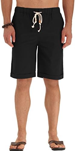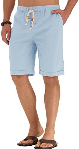 NITAGUT Men's Linen Casual Classic Fit Short Drawstring Summer Beach Shorts