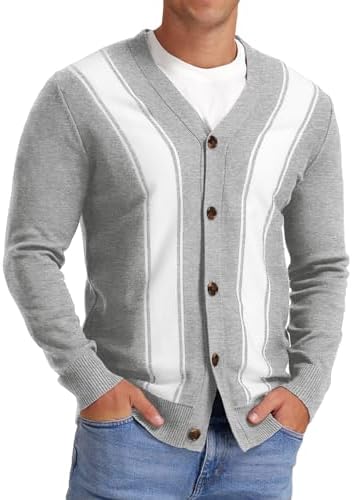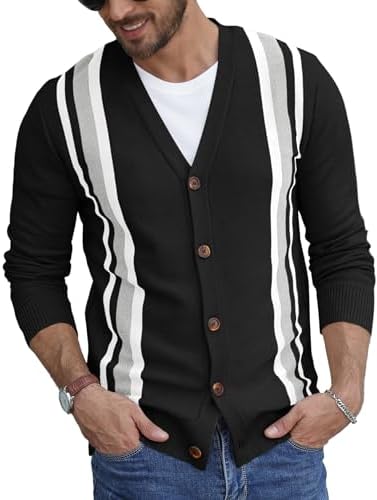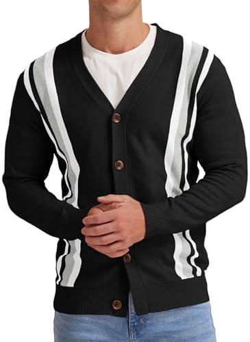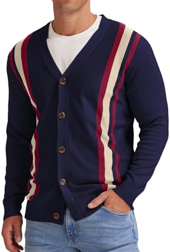 NITAGUT Men's Vintage Striped Long Sleeve Cardigan Sweater with Button V Neck Knitted Sweaters