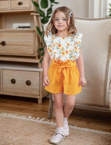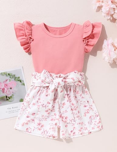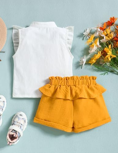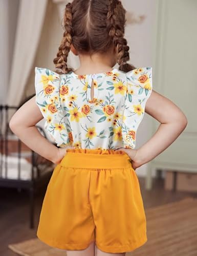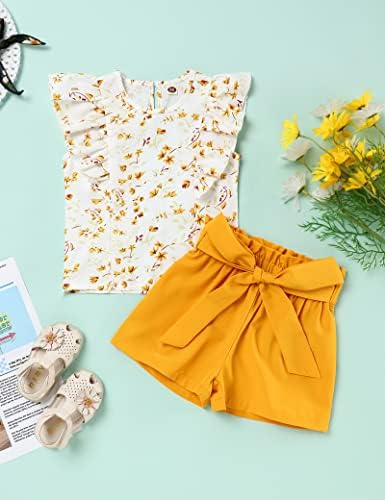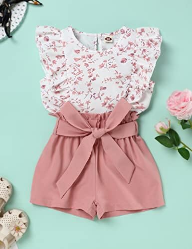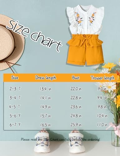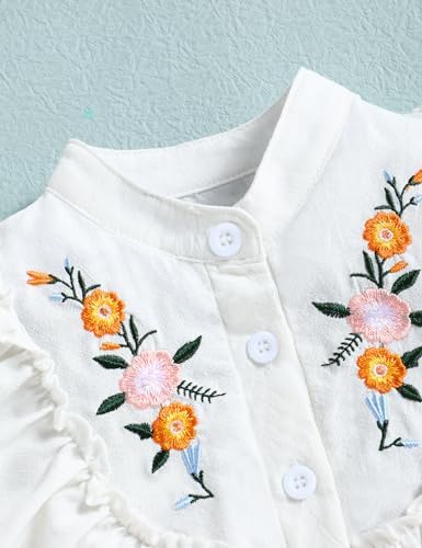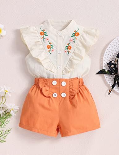 oklady Toddler Girl Clothes Ruffle Floral Embroidery Shirt and Shorts Set