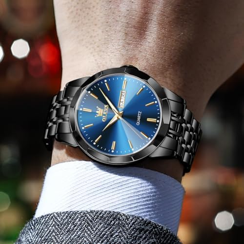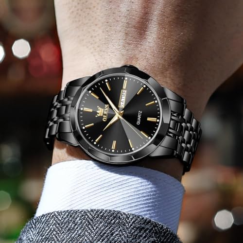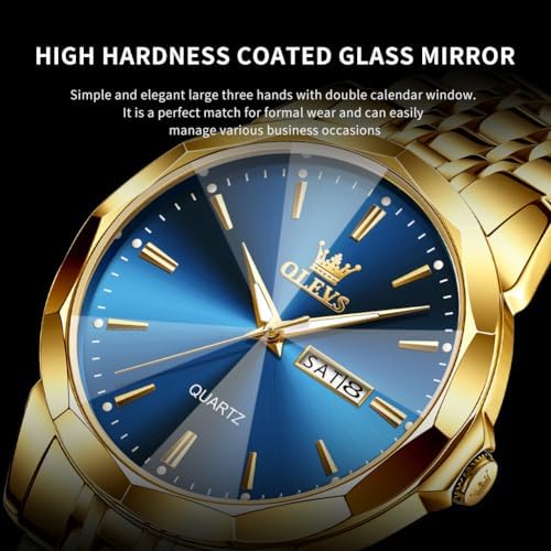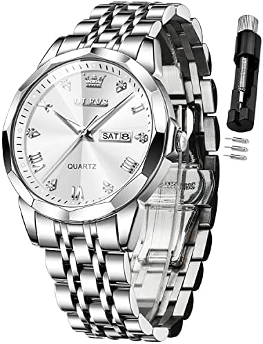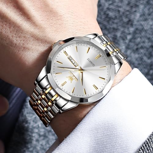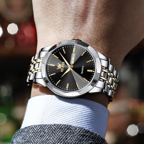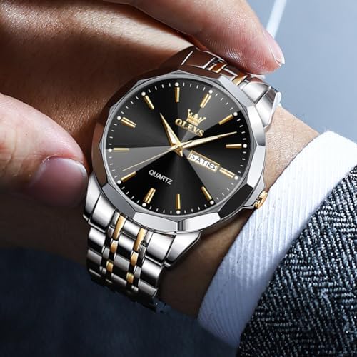 OLEVS Watch for Men Diamond Business Dress Analog Quartz Stainless Steel Waterproof Luminous Date Two Tone Luxury Casual Wrist Watch