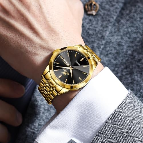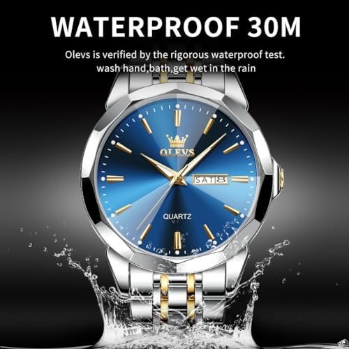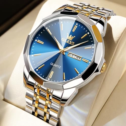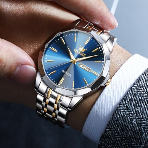 OLEVS Watch for Men Diamond Business Dress Analog Quartz Stainless Steel Waterproof Luminous Date Two Tone Luxury Casual Wrist Watch