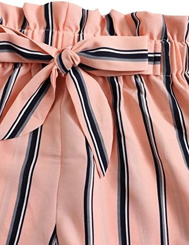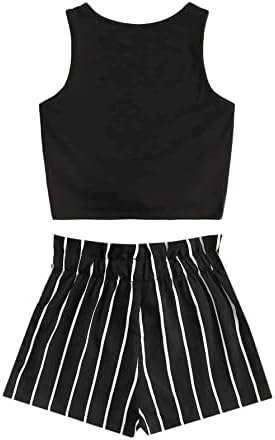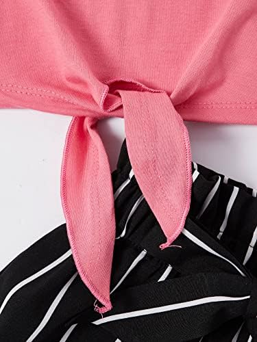 OYOANGLE Girl's 2 Piece Outfits Summer Tie Knot Tank Top and Paperbag Waist Striped Shorts Set