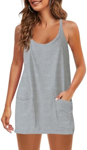 Panadila Womens Summer Sleeveless Mini Dress V Neck Spaghetti Strap Sundress Athletic Short Dress with Pockets