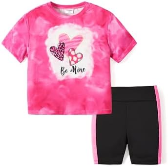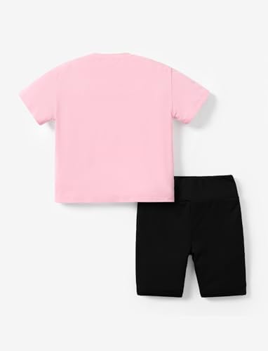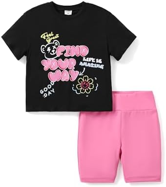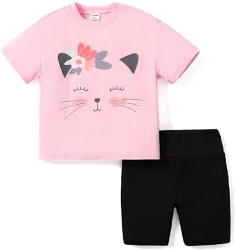 PATPAT Kids Girls 2Pcs Clothes Set Oversized T Shirt Short Sleeve Top and Pattern Print Biker Shorts Summer Outfits