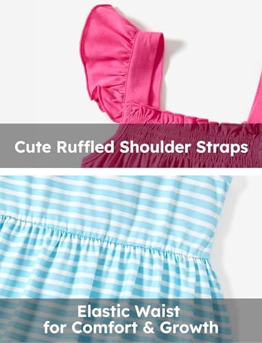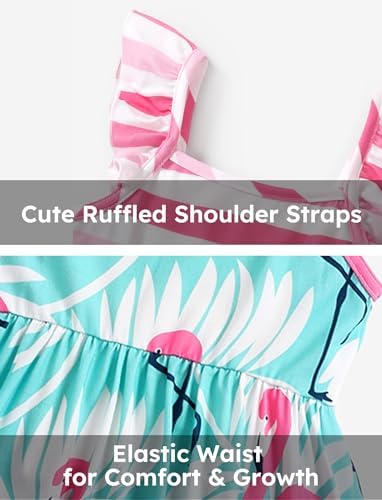 PATPAT Multipack Girl Toddler Dresses Sleeveless Flamingo Striped Toddler Casual Dresses Multicoloured